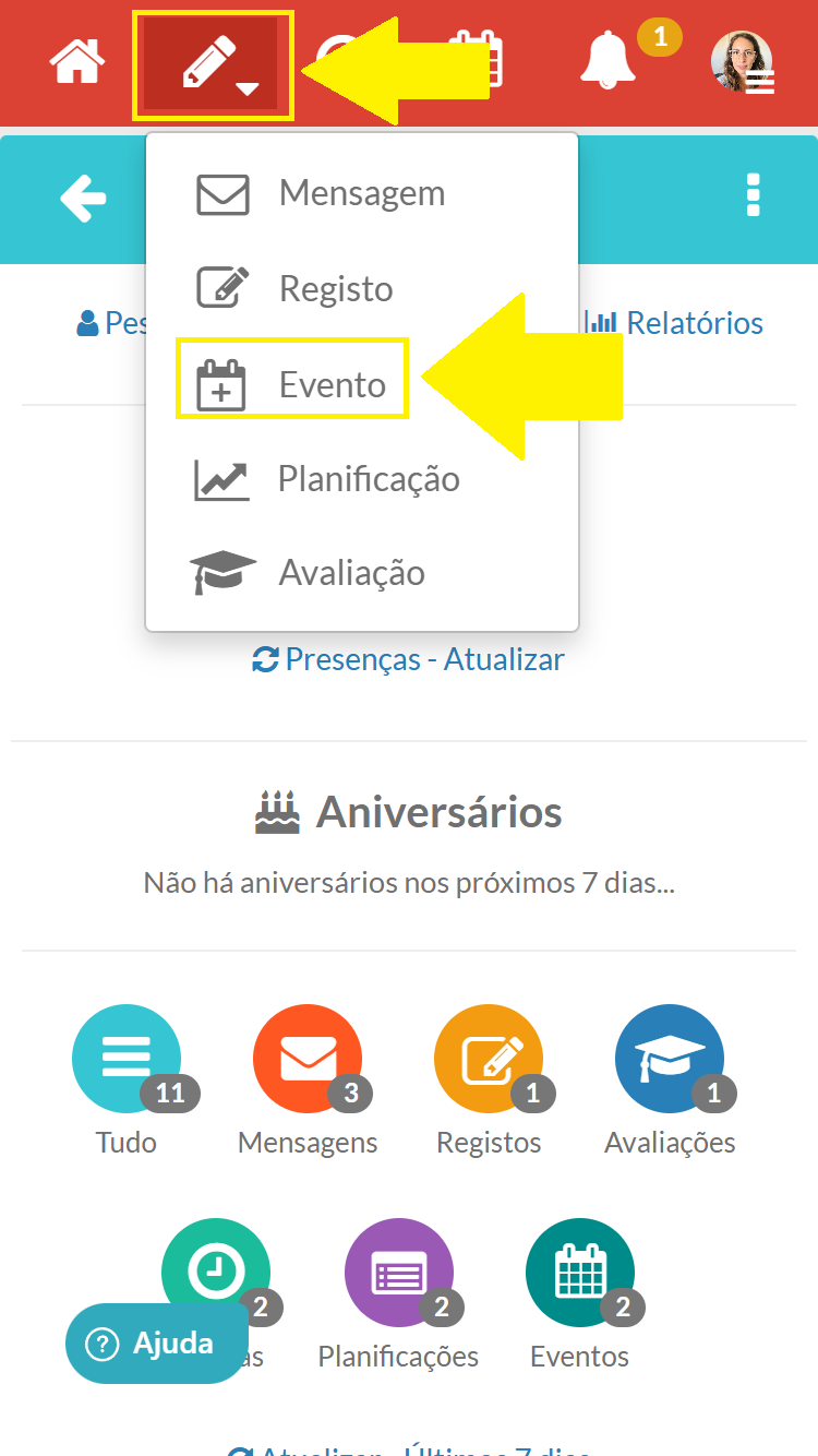 Estes eventos podem ser criados pela direção/coordenação para todas as salas ou apenas para as respetivas OU ainda pelo próprio educador da sala.