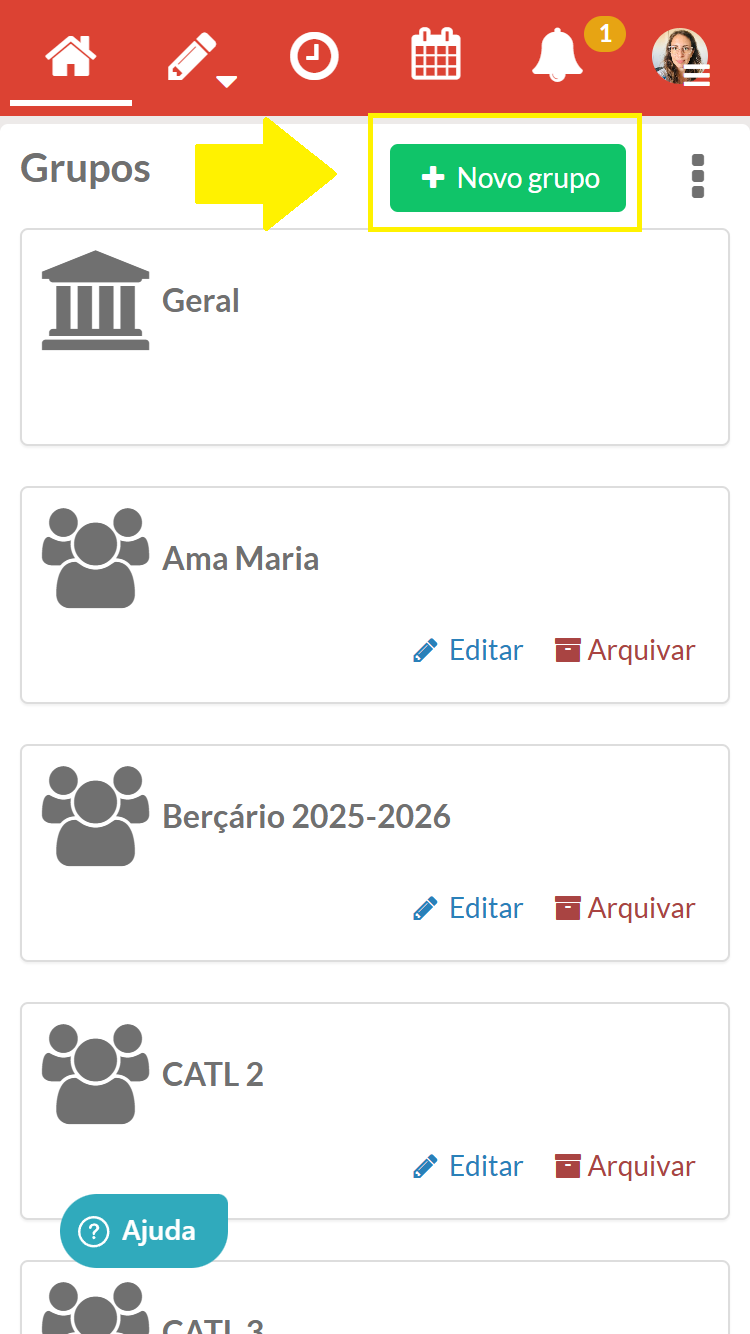 - No ecrã principal escolher a opção "+ Novo Grupo"
