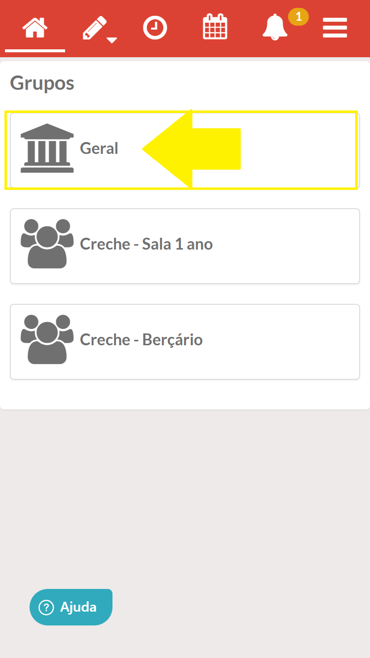 Passo 1 - Selecione o Grupo ao qual a criança pertence