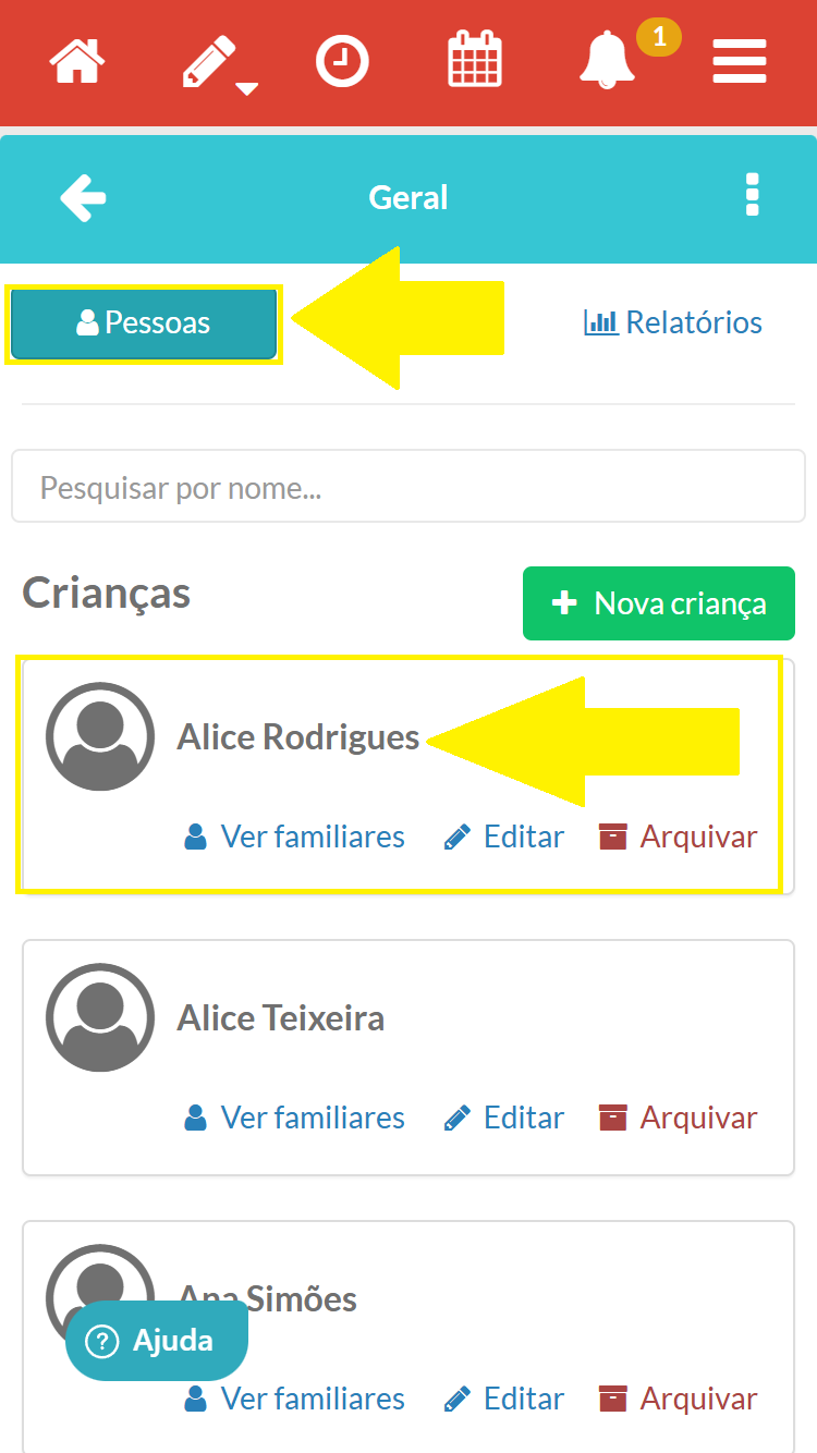 Passo 3 - Escolha a criança que pretende e selecione a opção "Consultar"