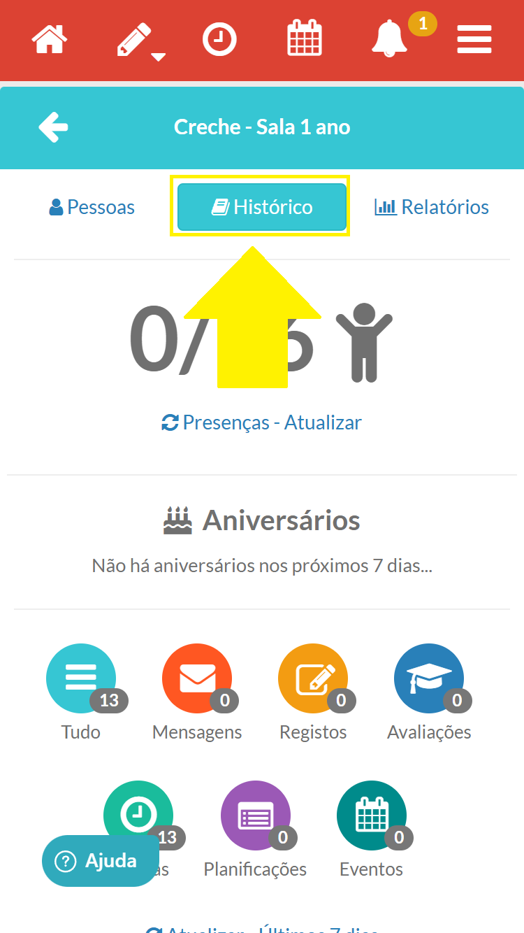 Passo 1 - Para ver o que a educadora anterior criou , pode aceder ao Geral. Saia da sua sala atual