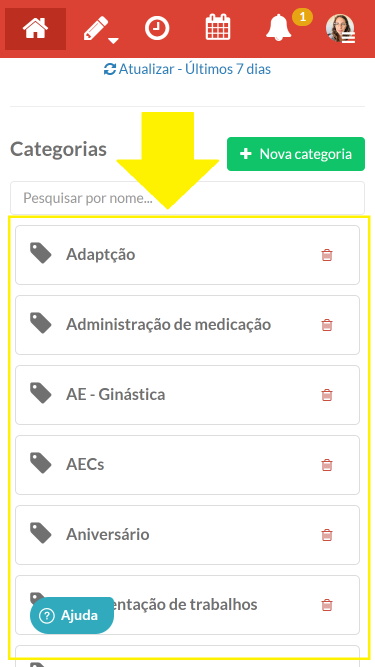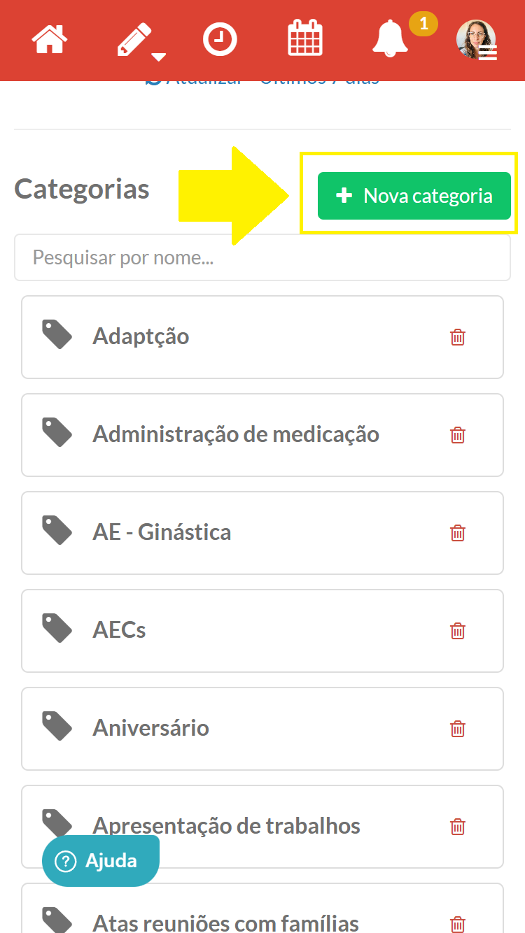 As “Categorias” são criadas apenas uma única vez pelo Gestor, ficando visíveis para todos os colegas da Instituição. Contudo, cada Educador só terá acesso ao que ele mesmo colocar na Categoria.