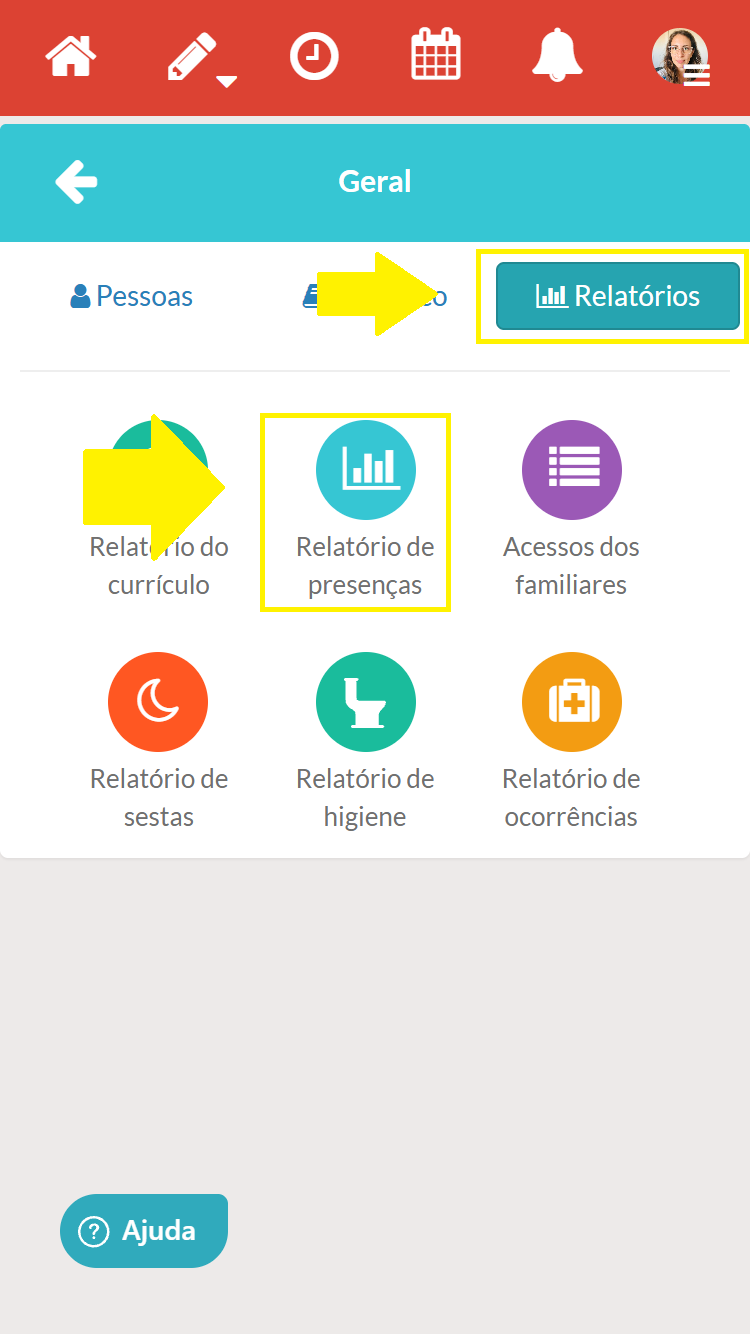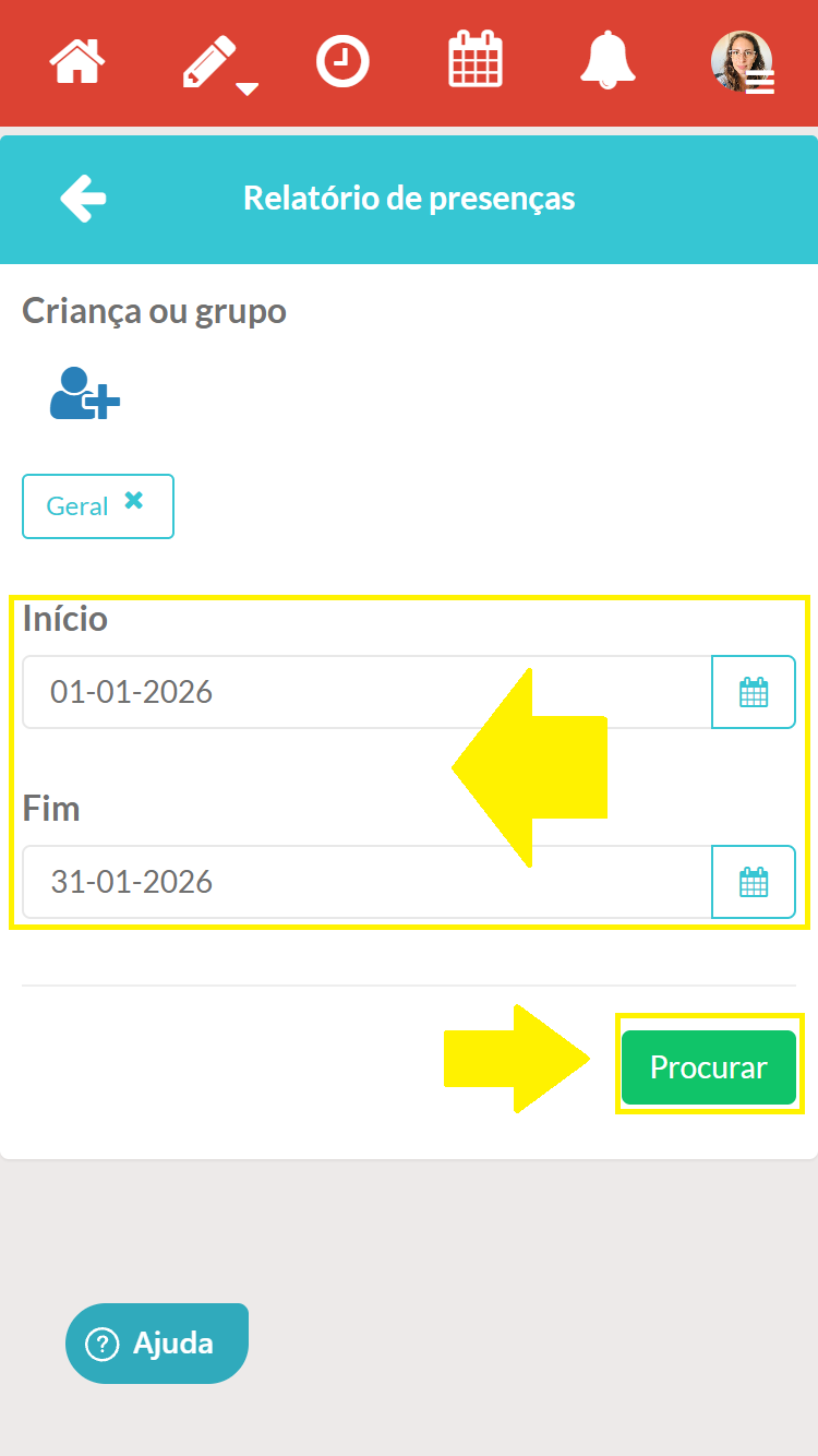 - E se precisar de tirar um relatório de presenças de todas as crianças da minha conta?