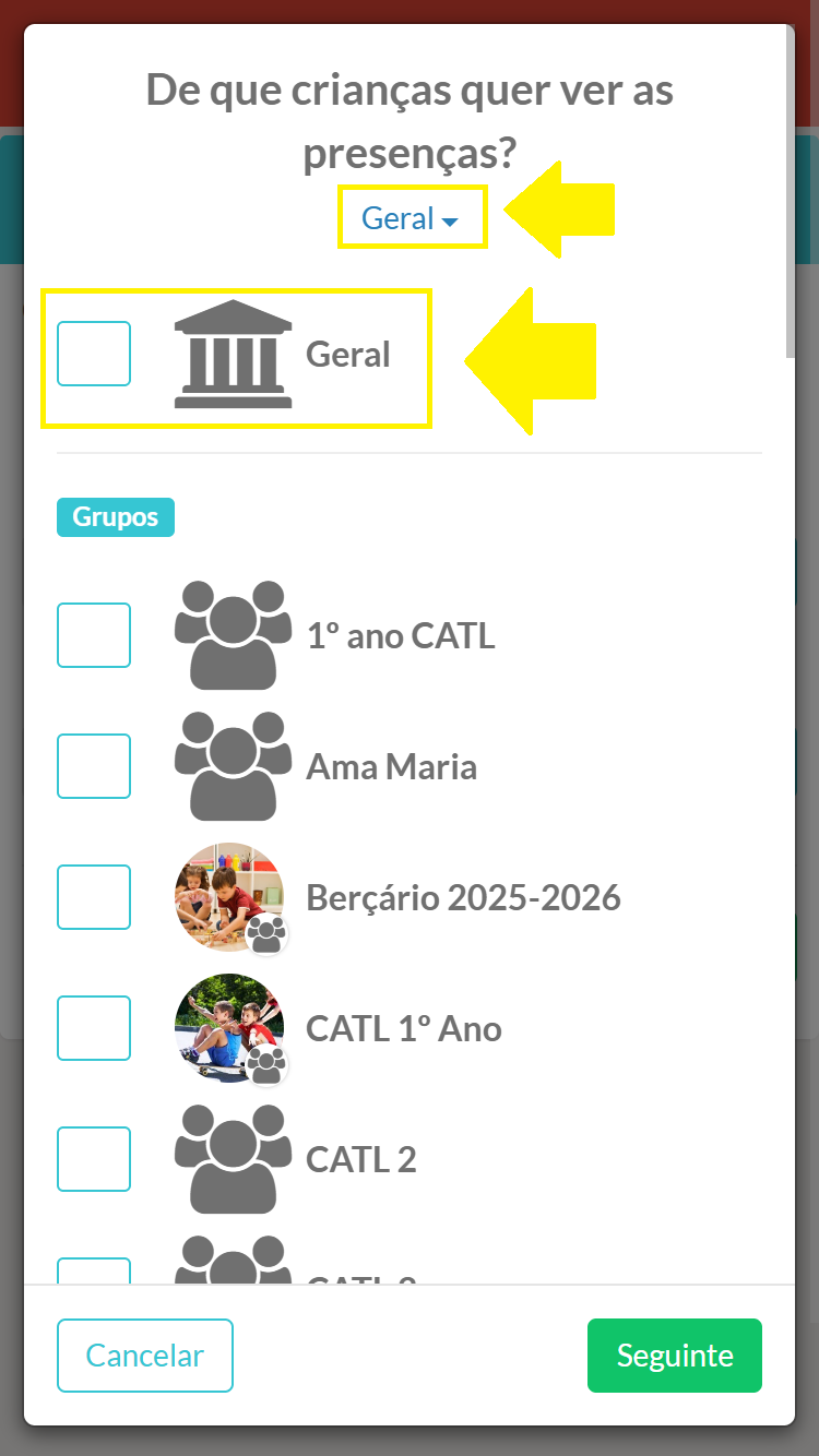 E se precisar de tirar um relatório de presenças de todas as crianças da minha conta?