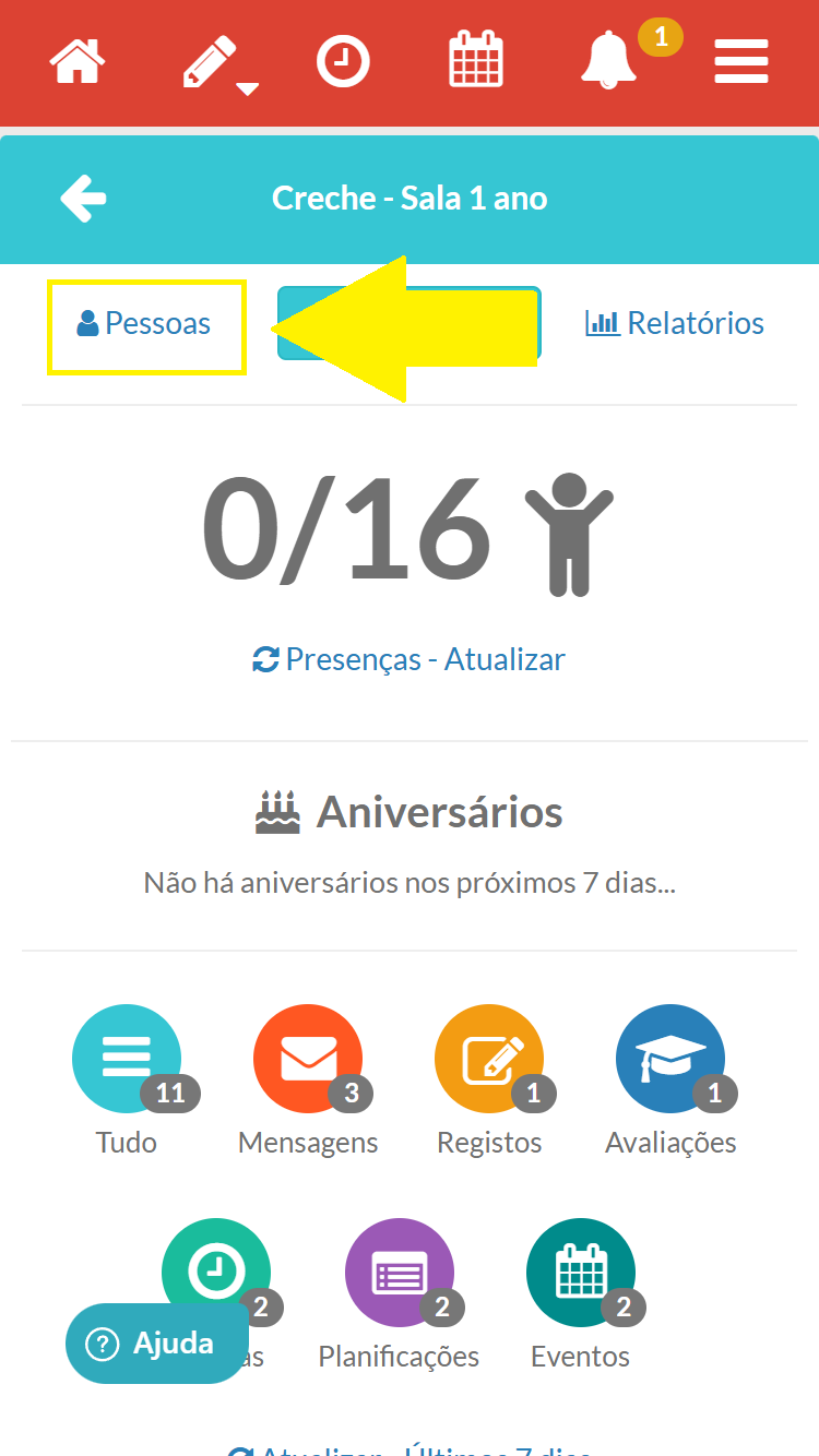 Passo 1- Aceda à lista de crianças clicando no "Pessoas"