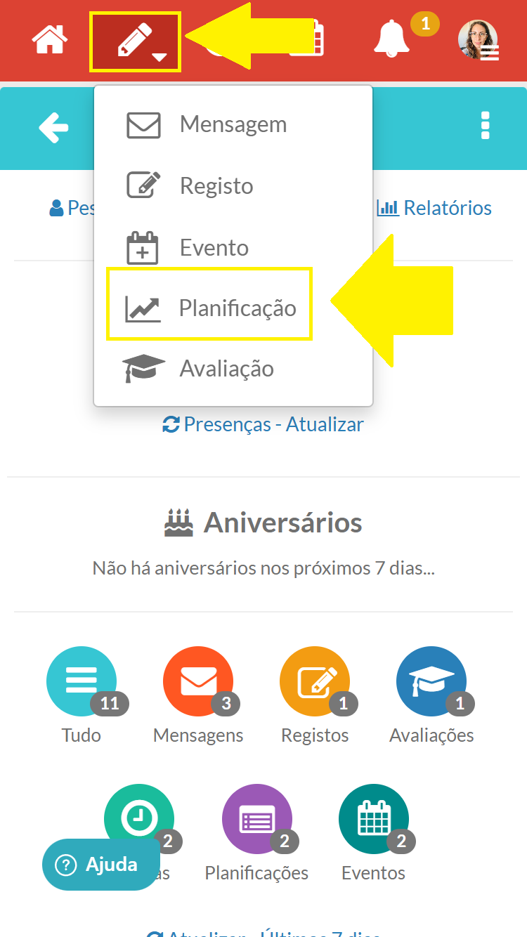 Passo 1 - Na barra vermelha carregar no botão do lápis e selecionar a opção "Planificação"