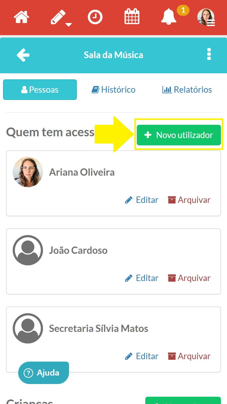 Passo 3 - Adicionar o profissional a este grupo criando um novo utilizador na sala Geral.